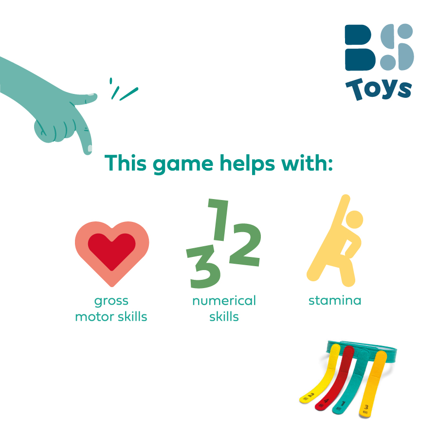 Il gioco supporta: motricità grossolana e coordinazione motoria, capacità di calcolo e orientamento nei numeri, resistenza e forma fisica