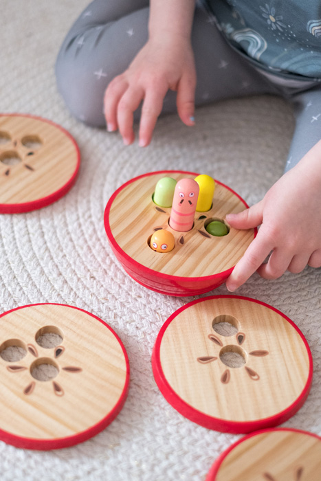Gioco di costruzione in legno a 9 pezzi a forma di mela, decorato con una foglia di feltro, dai colori vivaci. Esercitate la motricità fine, la coordinazione occhio-mano e l'immaginazione spaziale senza rinunciare al divertimento. Ogni vermetto che spunta dal pezzo base ha un'altezza diversa, componete la mela a strati in modo che il numero di fori nello strato corrisponda al numero di vermetti che spuntano. La mela assemblata è un ornamento per ogni scaffale. Principali caratteristiche: 9 pezziadatto anche come decorazionedesign robusto e resistente