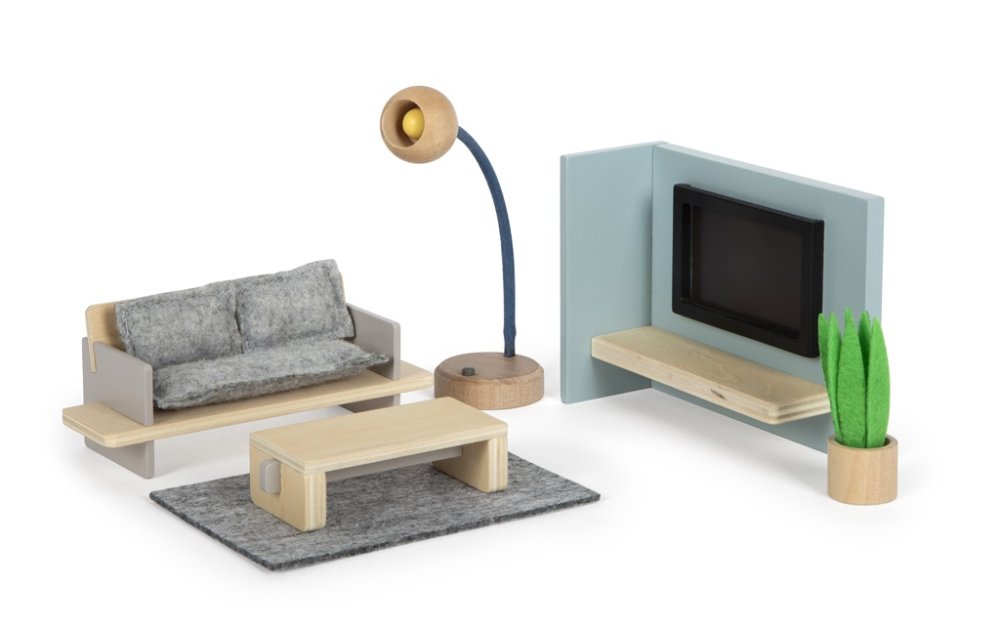 Desideri guardare la televisione o semplicemente sederti sul divano? Questo soggiorno non è solo una bellissima aggiunta a ogni casa delle bambole, ma motiva anche i bambini al gioco creativo e sviluppa la loro immaginazione. È realizzato per assomigliare il più possibile ai mobili veri. Include un divano con 3 cuscini, una lampada da terra alta flessibile, un tappeto accogliente, un tavolino da caffè, una pianta in vaso, un pannello con TV a schermo piatto e mensola e 2 carte bifacciali con un'immagine. La scheda può essere inserita nello spazio del televisore come schermo e i bambini possono cambiare il programma televisivo. Principali caratteristiche: arredamento per soggiorno moderno ed elegante2 carte di inserimento bifacciali con immagine per cambiare il programma in TVlampada da terra alta flessibilesviluppa l'immaginazione e motiva al gioco creativo