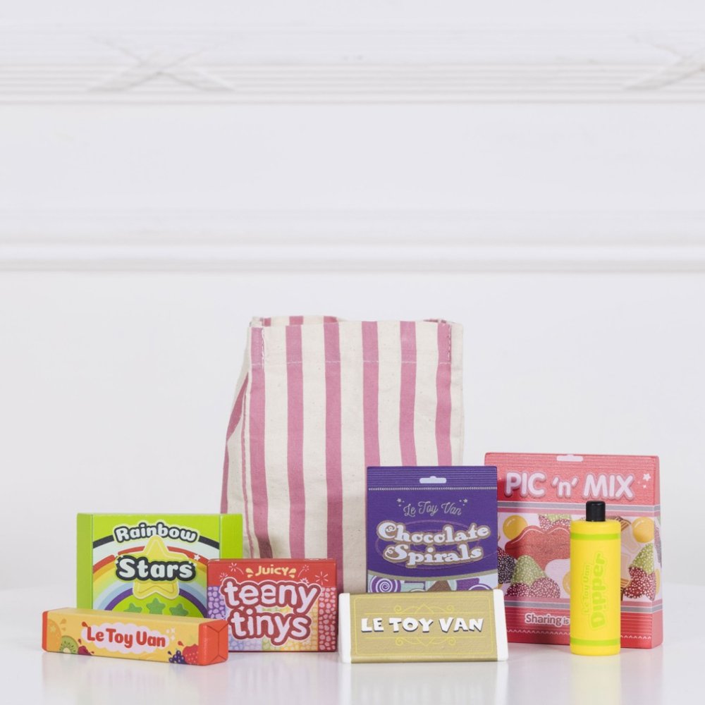 Questo giocattolo porterà una buona dose di nostalgia ad alcuni di voi. Un sacchetto retrò a righe pieno di dolciumi, che significa tanto divertimento zuccherino, senza mal di denti. Ogni dolcetto ha un'illustrazione unica, e su alcuni si possono persino trovare dettagli dorati. Questo giocattolo è realizzato eticamente in legno di caucciù sostenibile ed è al 100% privo di plastica! I dolci di legno introdurranno i bambini nel magico mondo dell'immaginazione. Giocattoli con uno scopoTutti i giocattoli Le Toy Van sono realizzati con un obiettivo: durare a lungo. Progettati con amore da esperti artigiani utilizzando pratiche etiche e materiali sostenibili, più rispettosi del nostro pianeta. Principali caratteristiche: prodotto eticamente con legno sostenibiletestato secondo i più severi standarddipinto con vernici atossiche a base d'acquaispira il gioco creativo e fantasiosoAiuta a sviluppare le capacità linguistiche e socialiSupporta lo sviluppo precoce Collezione Honeybake: I giocattoli di questa collezione sono adatti all'esplorazione, aiutano i bambini a sviluppare l'immaginazione, le capacità sociali e verbali e le funzioni cognitive. Il design tradizionale con dettagli moderni piacerà sicuramente ai bambini. Honeybake è la collezione Le Toy Van che ha vinto il maggior numero di premi per design, qualità, sicurezza e anche per il valore educativo e ludico.