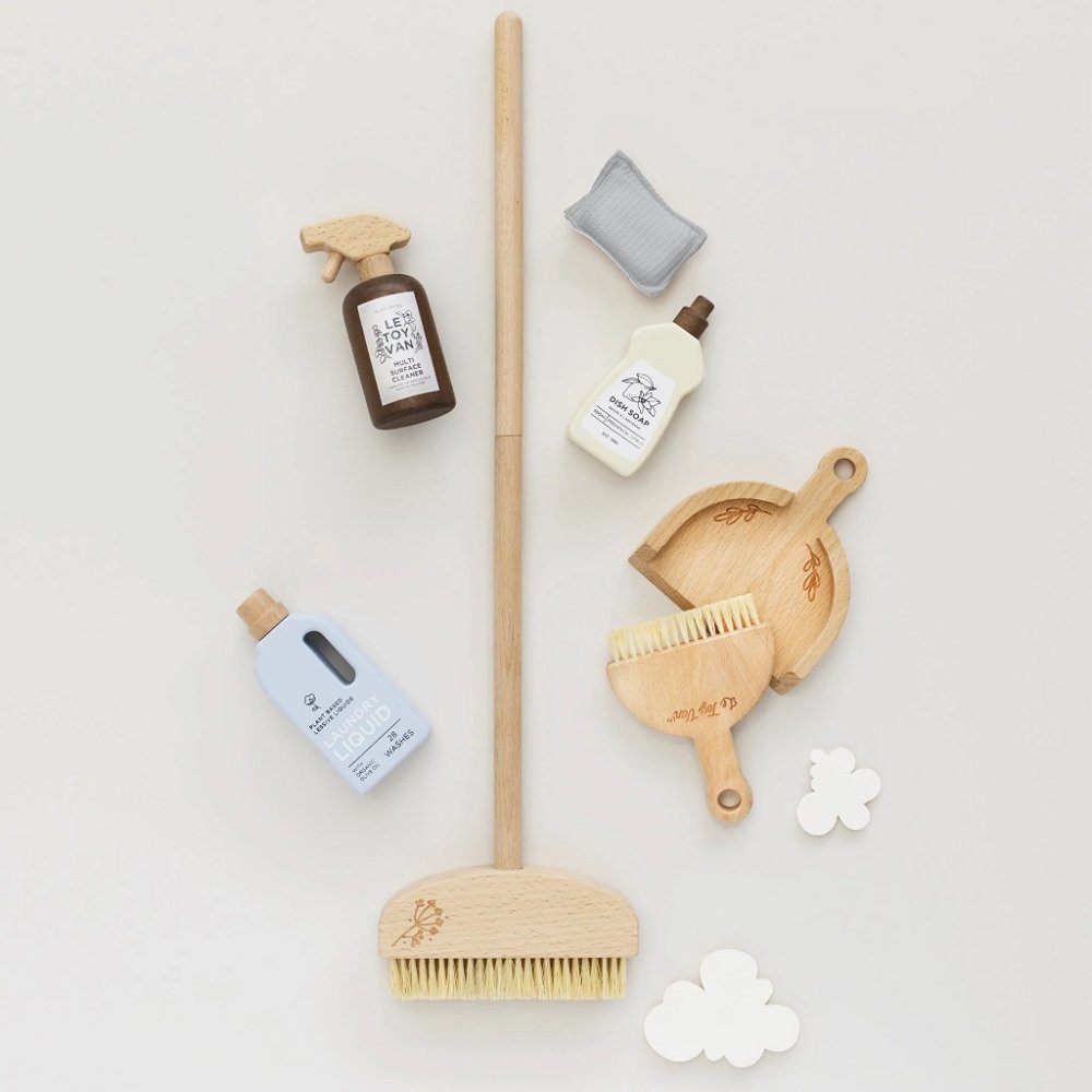 Questo set ecologico in legno per la pulizia include eleganti accessori per mantenere l'ordine nella cameretta dei bambini, realizzati in noce tinto e legno naturale. Il set include una paletta e una spazzola, una scopa di dimensioni adatte ai bambini, una spugna morbida in tessuto e detergenti per la pulizia. Il giocattolo per la casa con certificazione FSC supporta lo sviluppo delle capacità motorie e sviluppa nei bambini il senso dell'ordine in modo accattivante. Giocattoli con uno scopoTutti i giocattoli Le Toy Van sono realizzati con un obiettivo: durare a lungo. Progettati con amore da esperti artigiani utilizzando pratiche etiche e materiali sostenibili, più rispettosi del nostro pianeta. Principali caratteristiche: 7 pezzi unicisicurezza testata per bambini dai 3 anni in surealizzato eticamente in legno sostenibile con certificazione FSCtestato secondo i più severi standardgiocattolo senza plasticadipinto con vernici atossiche a base d'acquaispira il gioco creativo e fantasioso Il marchio e il certificato FSC® (Forest Stewardship Council) garantiscono che il legno con cui è stato realizzato il prodotto non è stato abbattuto illegalmente e proviene da foreste gestite in modo sostenibile o vicino alla natura, in cui vengono rispettati severi requisiti ambientali e sociali. Il marchio FSC® sul prodotto significa che, con il tuo acquisto, contribuisci a proteggere le foreste e a sostenere una gestione forestale rispettosa, responsabile e vicina alla natura, grazie alla quale le nostre foreste sono più stabili, sane, hanno una composizione di specie naturale e resistono meglio alle conseguenze negative dei cambiamenti climatici.