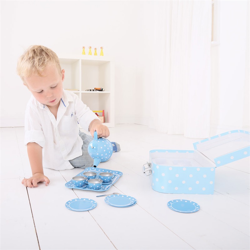 Questo splendido set da tè a pois include una valigetta di cartone contenente quattro tazze e piattini in metallo, una teiera e cucchiaini, piattini e un vassoio di portata. Il set contiene tutto ciò di cui i bambini hanno bisogno per una festa del tè. Principali caratteristiche: adatto anche per i viaggiun ottimo modo per incoraggiare la creatività e le ideerispetta le attuali norme di sicurezza europee