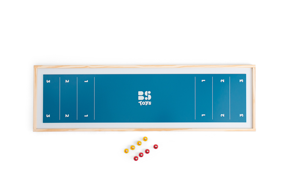 Gioco di abilità per 2 giocatori dai 6 anni in su. Muovi i dischi sulla plancia di gioco e mira alle zone ad alto punteggio. È tutta una questione di controllo: se usi troppa forza, finirai per tirare troppo forte! L'obiettivo del gioco è quello di lanciare i propri dischi nell'area con il punteggio più alto alla fine della plancia di gioco. Contenuto del gioco: 1 plancia di gioco in legno, 8 dischi (2 set da 4) Il gioco supporta: • sfida competitiva • coordinamento • pensiero strategico
