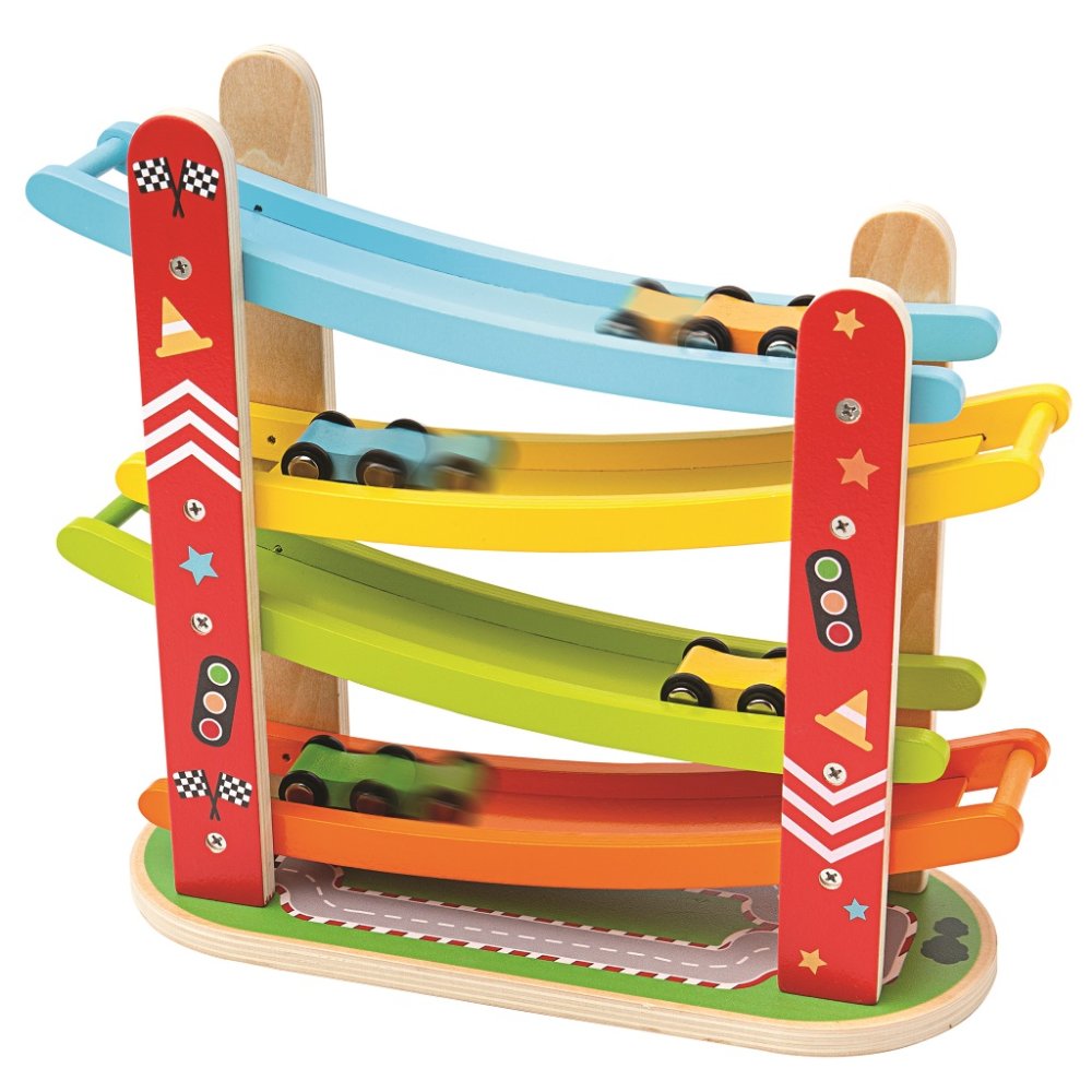 È tempo di gareggiare! I bambini adoreranno guardare le mini auto di legno sfrecciare lungo le rampe. Riuscirete a prenderle prima che raggiungano la fine? Dovrete essere super veloci. Un ottimo gioco da fare con gli amici o da soli. Quattro auto incluse. Principali caratteristiche: favorisce la mobilità e la destrezza realizzato con materiali di alta qualità e provenienti da fonti responsabiliconforme alle attuali norme di sicurezza europee