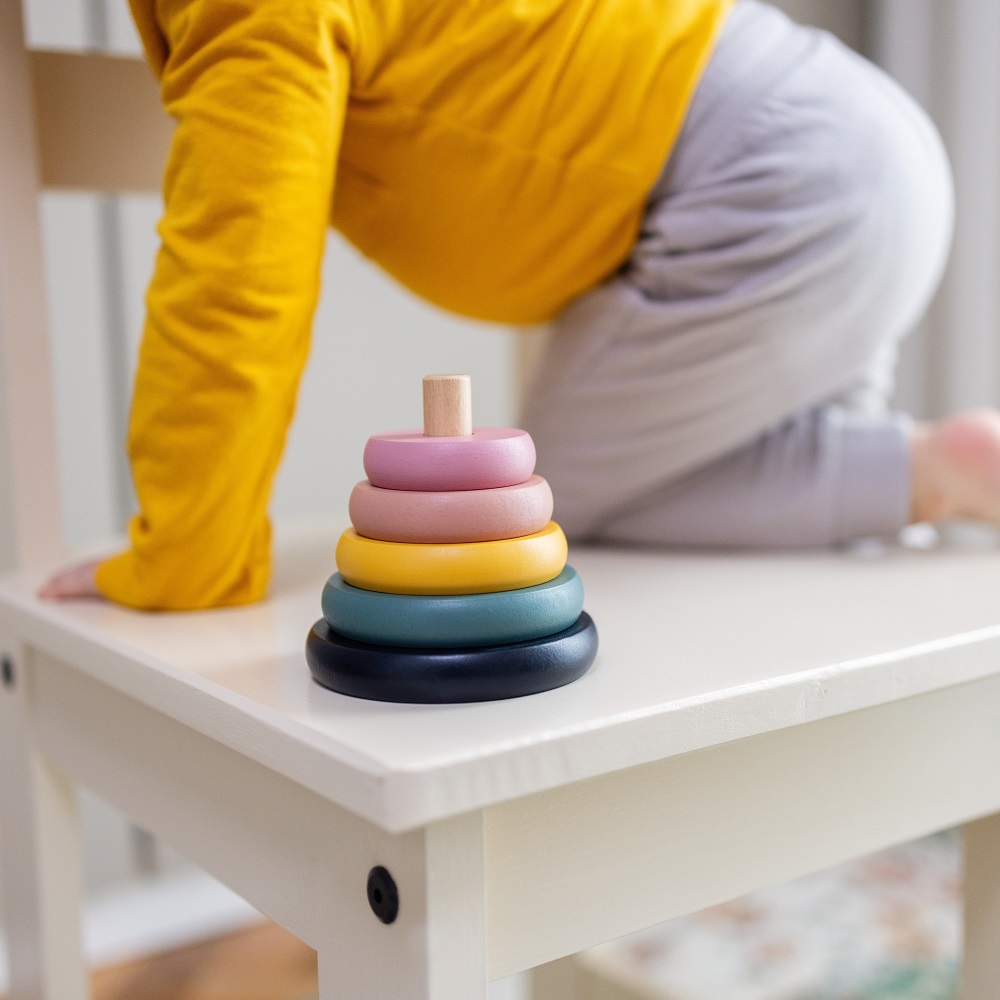 Un cono impilabile proveniente da un altro pianeta!Collezione LEGNO DI MARTELa collezione di giocattoli in legno WOOD OF MARS è molto più di un semplice set di blocchi. È un mondo unico in cui si sviluppano l'immaginazione, le capacità motorie e la creatività dei bambini. Questi giocattoli ultraterreni incoraggiano la scoperta di nuove dimensioni di gioco, dove ogni elemento stimola lo sviluppo e la capacità di pensiero spaziale.Ogni pezzo della collezione è stato progettato con cura per essere non solo esteticamente piacevole, ma anche per sviluppare le capacità cognitive dei bambini. È una combinazione unica di educazione e bellezza che permette ai bambini di esplorare in modo creativo i misteri dell'universo e di sviluppare abilità straordinarie.Il giocattolo pieghevole in legno ORBIT a forma di piramide è una combinazione di dischi colorati di diverse dimensioni. Ogni disco è stato accuratamente lavorato e non presenta bordi taglienti, per garantire un gioco sicuro ai bambini più piccoli.Oltre a migliorare la destrezza delle piccole mani e la coordinazione occhio-mano, il puzzle sviluppa anche l'immaginazione spaziale e la capacità di riconoscere forme e colori. È ideale per i bambini che hanno appena iniziato la loro avventura con i blocchi e le torri.La piramide è composta da 6 dischi colorati che il bambino posiziona sulla base con uno spillo. Il giocattolo sviluppa perfettamente il senso di osservazione e insegna il pensiero logico. Grazie alla sua solida lavorazione, è stabile e durevole.Caratteristiche:- durevole e resistente,- in legno di tè e pannello MDF,- design ergonomico, realizzato pensando ai più giovani,- supporta lo sviluppo motorio dei bambini piccoli,- praticare l'abilità,- imparare i colori e le forme,- progettato per bambini a partire da 36 mesi (36m+),- dimensioni del giocattolo: 10 x 10 x 10 cm.Indirizzo del fornitore: ags 92, s.r.o., Drahobejlova 2515/18, 190 00 Praga, Repubblica Cecainfo@petiteetmars.comAVVISOPer la sicurezza e la salute del bambino, rimuovere tutte le parti dell'imballaggio e i dispositivi di fissaggio prima del primo utilizzo. Utilizzare sempre il prodotto sotto la supervisione di un adulto. Non lasciate mai un bambino incustodito. Controllare il prodotto prima di ogni utilizzo. Smettete di usarlo al primo segno di danno. Conservare le informazioni sul prodotto per riferimenti futuri.