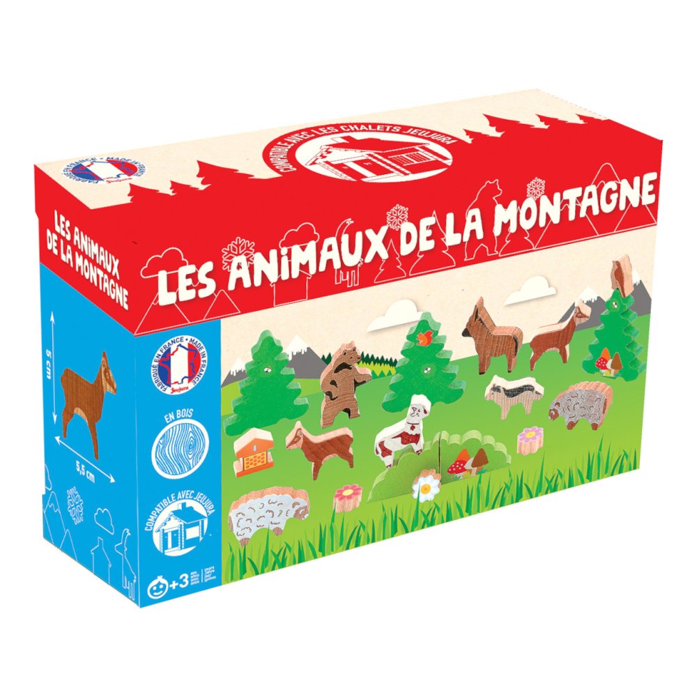 Set di animali di montagna, accessori inclusi. Le figure dei set di costruzioni Jeujura Constructions possono essere utilizzate anche separatamente. Sono offerti in serie a tema, ma possono essere combinati in vari modi. Come i set di costruzioni, sono realizzati in legno massello e trattati esclusivamente con colori e vernici a base d'acqua. Principali caratteristiche: contiene 10 animali con accessoriprodotto in Francia