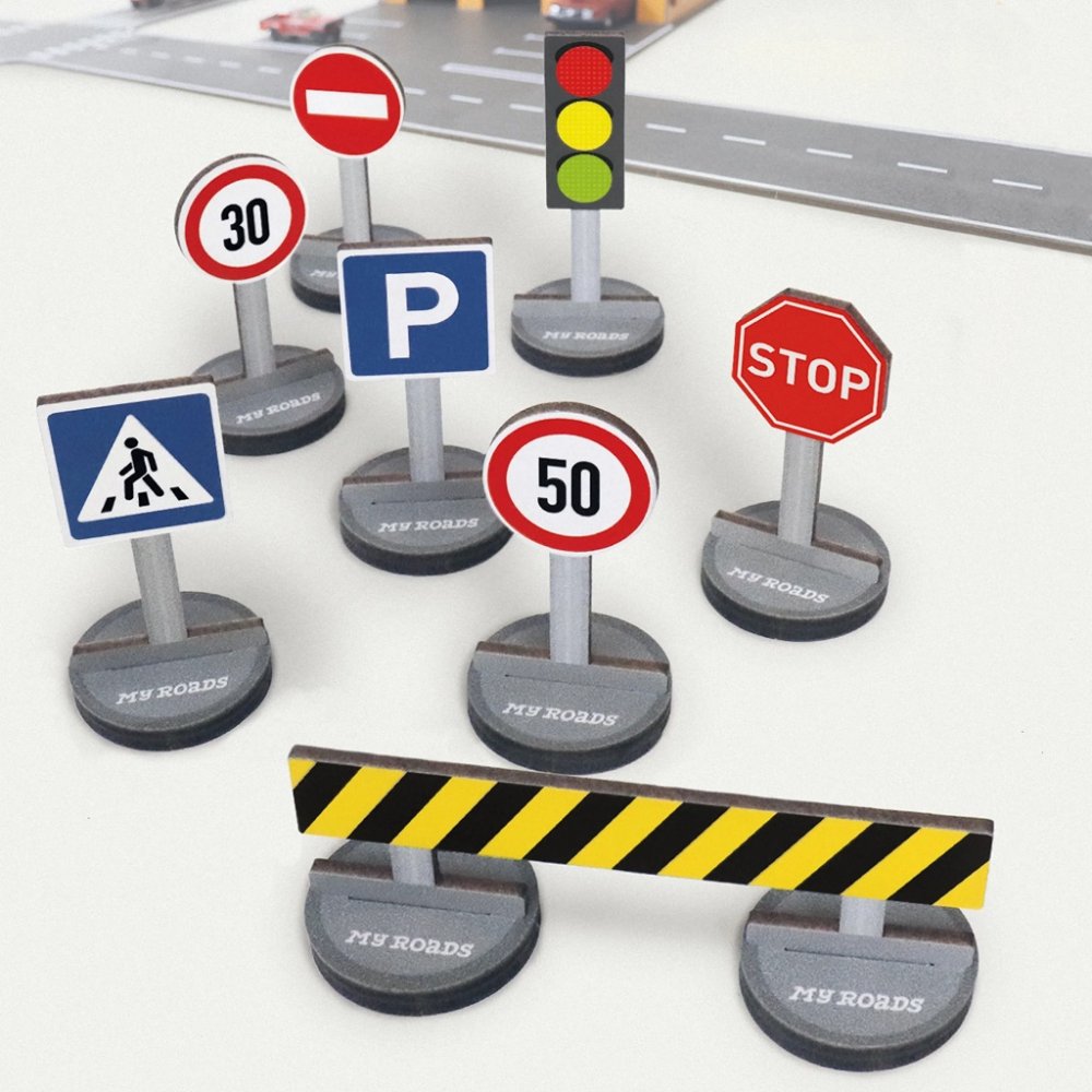 MyRoads è un gioco ecologico realizzato in legno naturale sostenibile proveniente da fonti responsabili. I pezzi sono prodotti dalla società tedesca Werkhaus. Insieme al set MyRoads Starter (che include tutti i tipi di strade), troverai in questa serie molti set aggiuntivi che puoi combinare a piacimento. Questo set contiene 9 segnali stradali che possono essere utilizzati come complemento alle strade della serie corrispondente. Nota: Poiché si tratta di prodotti in legno naturale, possono presentare lievi variazioni di colore. Le macchinine e le strade non sono incluse nella confezione. Principali caratteristiche: contiene 8 segnali stradali e 9 piedistallicompatibile con tutti i prodotti della serie MyRoadssupporta l'immaginazione, la destrezza e la coordinazionerealizzato con materiali naturali sostenibili e ottenuti in modo responsabile
