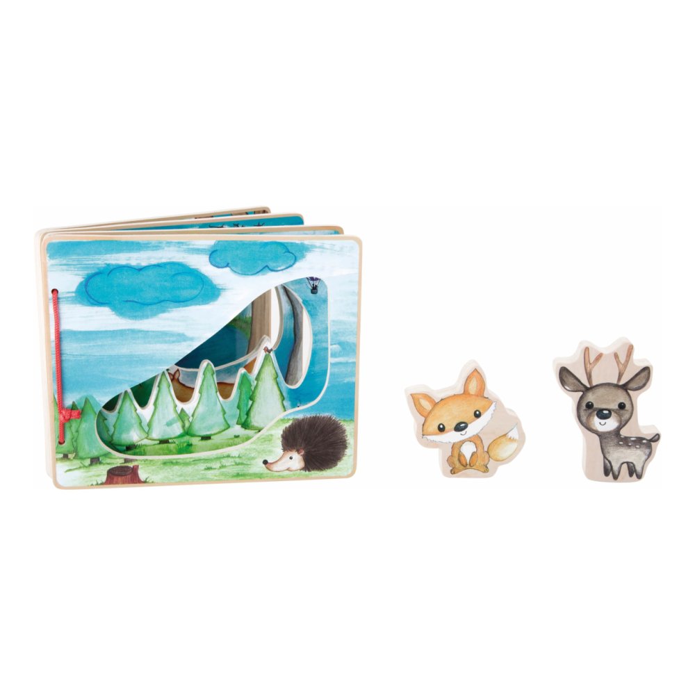 Con un libro illustrato, ti immergerai in una foresta profonda. Piccoli esploratori saranno accompagnati da una volpe e un cervo durante la spedizione con il libro, aiutandoli a scoprire la flora e la fauna in modo giocoso. Il libro stimola la fantasia e permette di vivere avventure. La coppia di guide animali della foresta può essere fissata sul retro del libro con chiusure a strappo per un trasporto sicuro. Realizzato al 100% con legno certificato FSC®. Caratteristiche principali:libro e 2 figurinerealizzato in legno 100% FSC® Il marchio e la certificazione FSC® (Forest Stewardship Council) garantiscono che il legno con cui è stato realizzato il prodotto non è stato tagliato illegalmente e proviene da foreste gestite in modo sostenibile o naturale, nel rispetto di severi requisiti ambientali e sociali. Il marchio FSC® sul prodotto significa che con il tuo acquisto contribuisci a proteggere le foreste e a sostenere una gestione rispettosa, responsabile o naturale, grazie alla quale le nostre foreste sono più stabili, sane, hanno una composizione di specie naturale e resistono meglio alle conseguenze negative dei cambiamenti climatici.