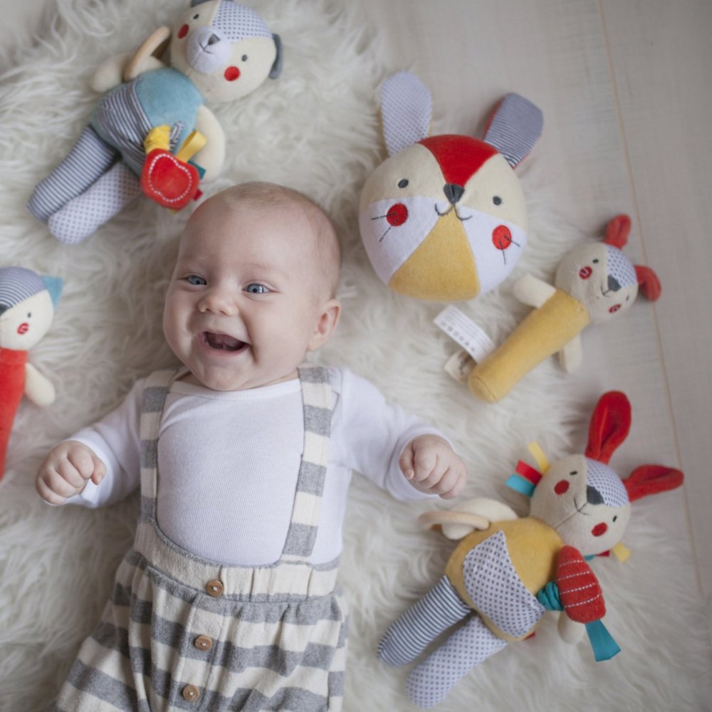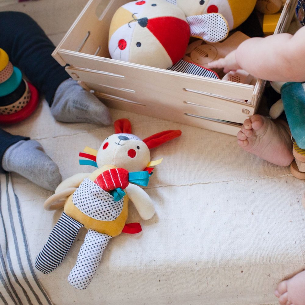 Divertimento con il coniglietto sonaglio per bambini dai 2 anni in su. Questo piccolo coniglietto è un giocattolo organico ideale per i neonati. Il giocattolo è fatto a mano e funge da massaggiagengive, sonaglio o orsacchiotto. Il giocattolo è destinato ai neonati. Principali caratteristiche: Intrattiene con delicate attività di sviluppoRealizzato in cotone organico certificato GOTS di altissima qualità e colori atossiciRealizzato con materiali riciclatiSonaglioColorato nel rispetto dell'ambiente