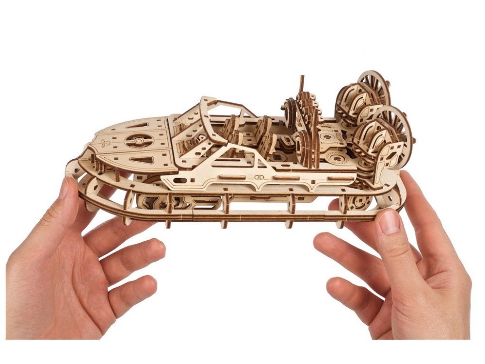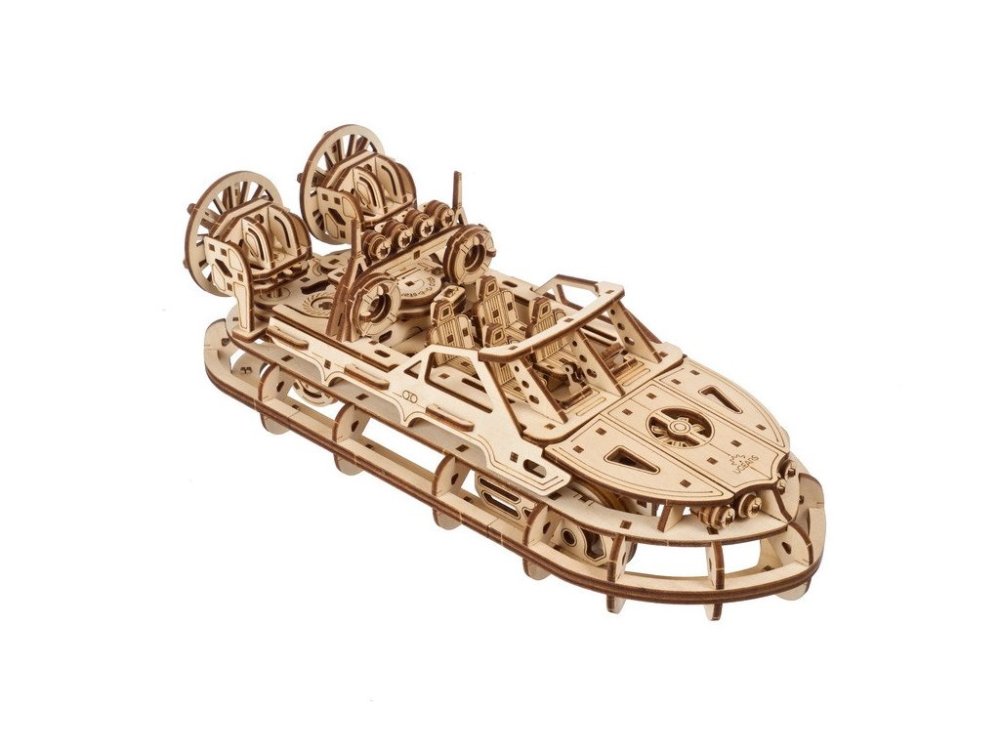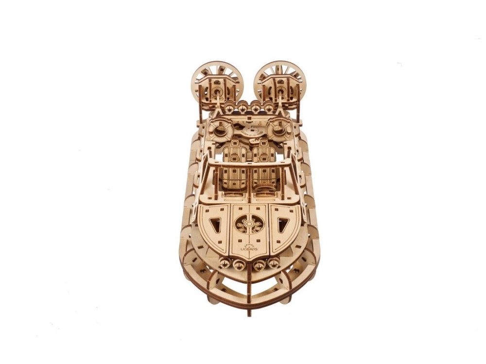 Hovercraft di salvataggio. Questo modello in legno è alimentato da un motore a molla con chiave a cricchetto di carica, posizionato sul telaio dell'imbarcazione. L'interruttore Start/Stop consente di caricare il motore con dieci giri in senso orario, quindi di attivare il motore e, grazie alla doppia elica, imita i delicati movimenti oscillatori di un vero hovercraft. Realismo eccezionale, design intelligente e attenzione ai dettagli sono i tratti distintivi dei modelli Ugears. Principali caratteristiche: tempo di assemblaggio: circa 6 oredifficoltà mediaistruzioni in 11 linguedifficoltà mediaprogettato e prodotto in Ucraina383 pezzi