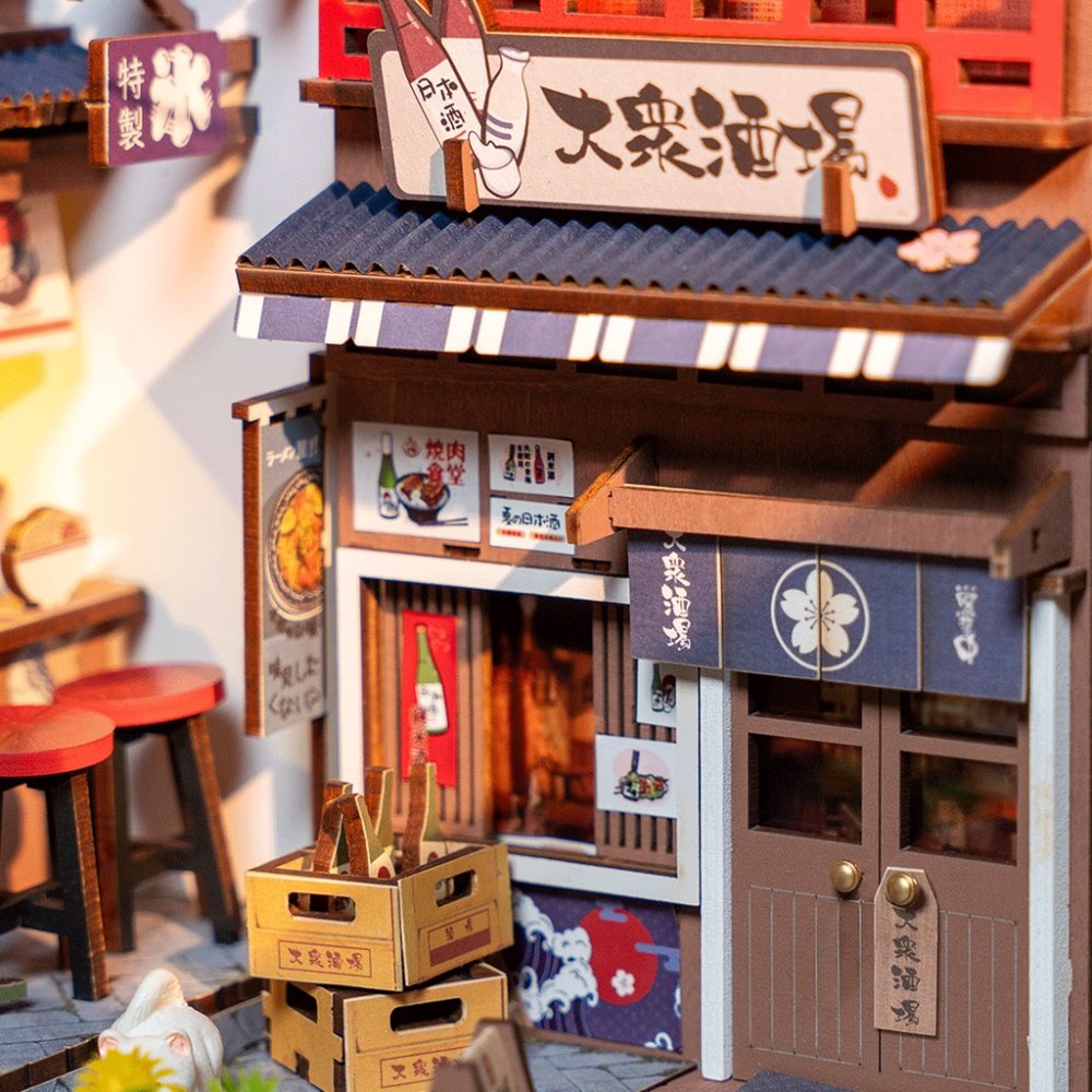 Passeggia per le vie di una città giapponese, dove ti aspetta il profumo del tradizionale cibo di strada. Questo angolo cattura l'atmosfera della vita notturna – con un informale bar izakaya, dove amici o colleghi trovano sempre relax con cibo e bevande dopo il lavoro, ristoranti ramen con una gustosa ciotola di noodles tipici e un bancone con griglia, dove piatti come il wagyu (tenera carne di manzo) o il tebasaki (alette di pollo) vengono preparati direttamente davanti ai clienti. L'intera scena è completata da dettagli autentici, come insegne colorate, menu, sgabelli da bar e casse di saké. L'illuminazione soffusa in tonalità calde e i fiori di sakura che fluttuano sopra ogni cosa contribuiscono anche all'atmosfera tranquilla. Invita la tua famiglia o i tuoi amici e goditi un divertente processo creativo senza la necessità di utilizzare colla o strumenti. Tutti i pezzi del puzzle sono tagliati con precisione e si incastrano facilmente per garantire che il risultato sia stabile e durevole. La pellicola di plastica protegge la tua creazione da polvere e sporco. Fornito con istruzioni di montaggio dettagliate.Principali caratteristiche: 249 pezzi tagliati con precisionefacile montaggio senza colla e attrezzisviluppa le capacità logiche e motoriepromuove la pazienza ideale come regalo o decorazione unicadifficoltà mediaIlluminazione a LEDl'alimentazione è fornita da 2 batterie 2xAAA (non incluse)le istruzioni di montaggio sono incluse nella confezione
