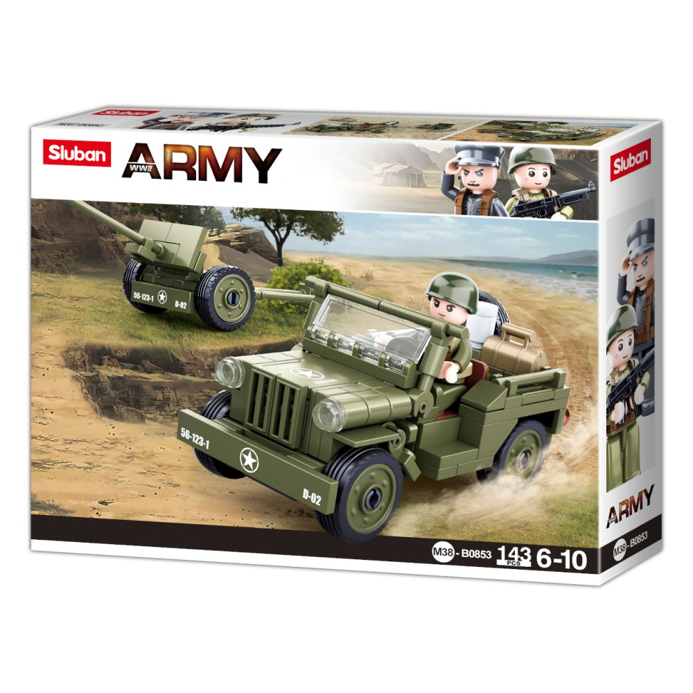 Aggancia il cannone alla jeep e non esitare a partire per il fuoristrada, hanno bisogno di te! L'innovativa costruzione Sluban può essere combinata con costruzioni simili di molti altri importanti produttori. Sono realizzati in plastica ABS di alta qualità, innocua e resistente. Ogni costruzione è dotata di istruzioni di montaggio e confezionata in una scatola di carta colorata. Principali caratteristiche: 143 pezzi e 1 personaggiodifficoltà mediapersonaggi innovativi con parti del corpo rotanti e oscillanticompatibile con le costruzioni di altri produttori