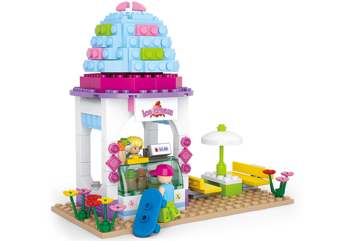 Gelato al pistacchio, ai mirtilli o magari all'arancia. Una gelateria non può mancare in nessuna cittadina. Anche Girls Dream non fa eccezione. L'innovativo kit di costruzione Sluban può essere combinato con kit di costruzione simili di molti altri importanti produttori. Sono realizzati in plastica ABS di alta qualità, sicura e resistente. Ogni kit di costruzione è dotato di istruzioni di montaggio e confezionato in una scatola di carta stampata a colori. Caratteristiche principali:205 pezzi, 2 figurinebassa difficoltàpersonaggi innovativi con parti del corpo rotanti e oscillantiCompatibile con i set di costruzioni di altri produttori