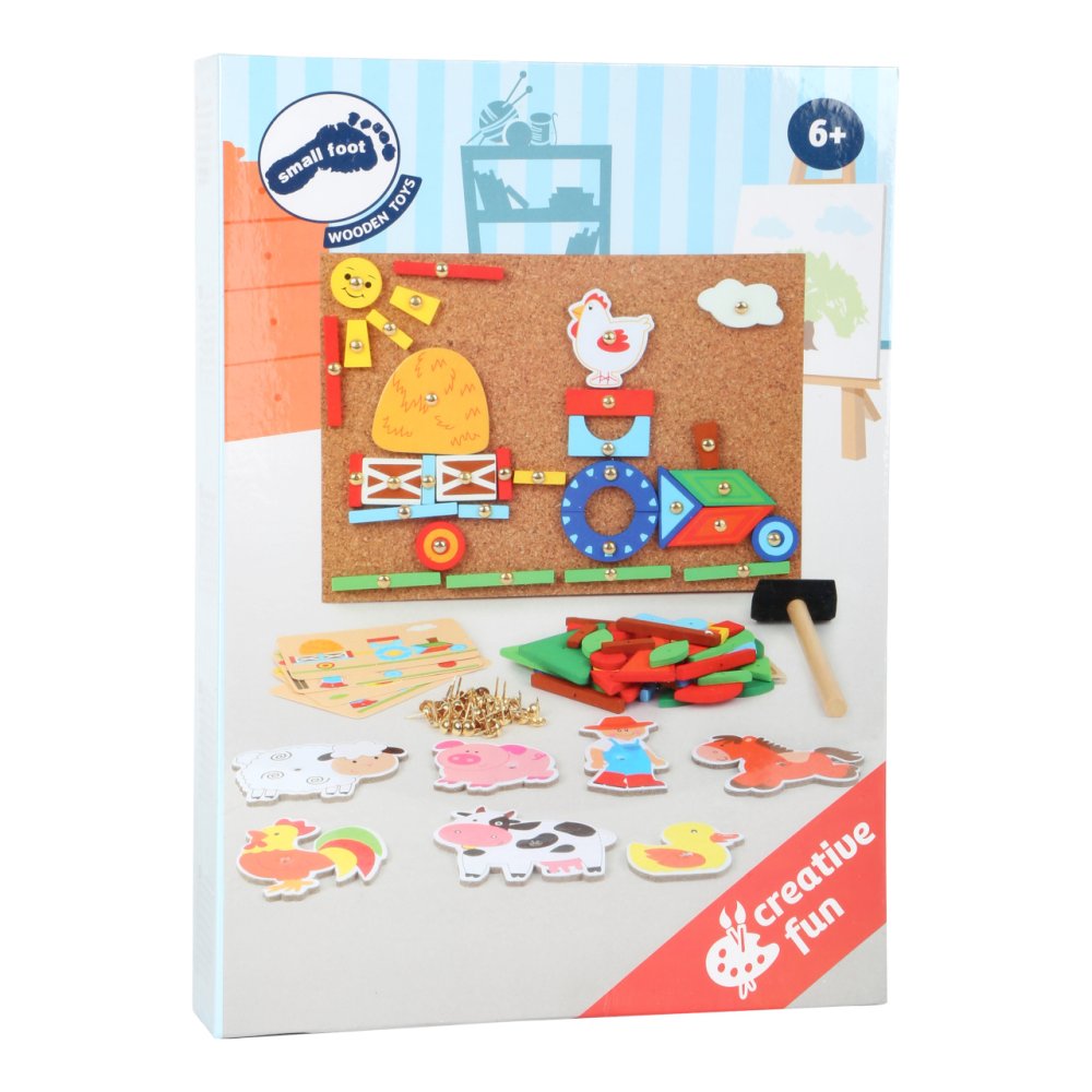 Il divertimento creativo non finisce mai! Con questo martello, pezzi e pannello di sughero puoi creare molte forme di fattoria. Quattro schede modello suggeriscono motivi per l'immagine. Il set è confezionato in una scatola ed è facile da trasportare. Principali caratteristiche: promuove la creatività e la concentrazionesupporta le capacità motorie finipratica scatola portaoggetti