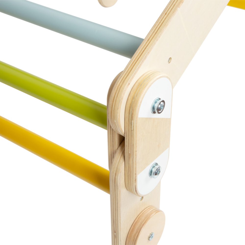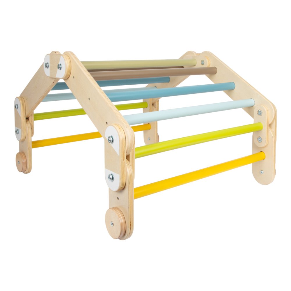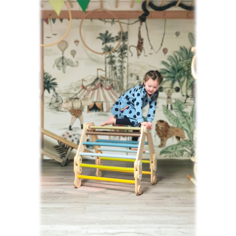 La scala da arrampicata si distingue per la sua struttura flessibile e regolabile. Può essere disposta in diverse forme e incoraggia la creazione di set completi formati da un numero maggiore di questo giocattolo. Grazie a questa caratteristica, può essere anche eccezionalmente compatta quando necessario. I bambini possono sviluppare le capacità motorie, l'equilibrio o la coordinazione dei movimenti con il suo aiuto, e può essere utilizzata anche per la terapia del movimento. Completa perfettamente ogni stanza o angolo giochi e può essere facilmente combinata con altri ostacoli della serie Small Foot Adventure, unificati strutturalmente e cromaticamente. È realizzato con una combinazione di compensato resistente e legno massiccio. Il prodotto richiede il montaggio, fornito con istruzioni di montaggio dettagliate. Caratteristiche principali:ampie possibilità di regolazione e disposizionerobusta struttura in legnoportata massima 50 kg