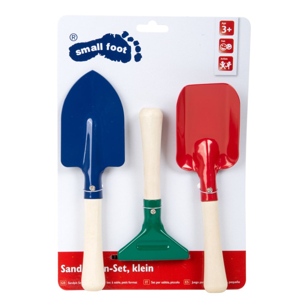 Set di attrezzi da giardino per bambini. 3 pezzi nella confezione: paletta, vanga, rastrello. Con questi attrezzi da giardinaggio, i bambini sono equipaggiati in modo ottimale per prendersi cura del giardino o per scavare nella sabbia. Principali caratteristiche: Dimensione ideale per i bambiniSviluppa le capacità motorie e il rapporto con la naturaRealizzato in metallo, manico in legno