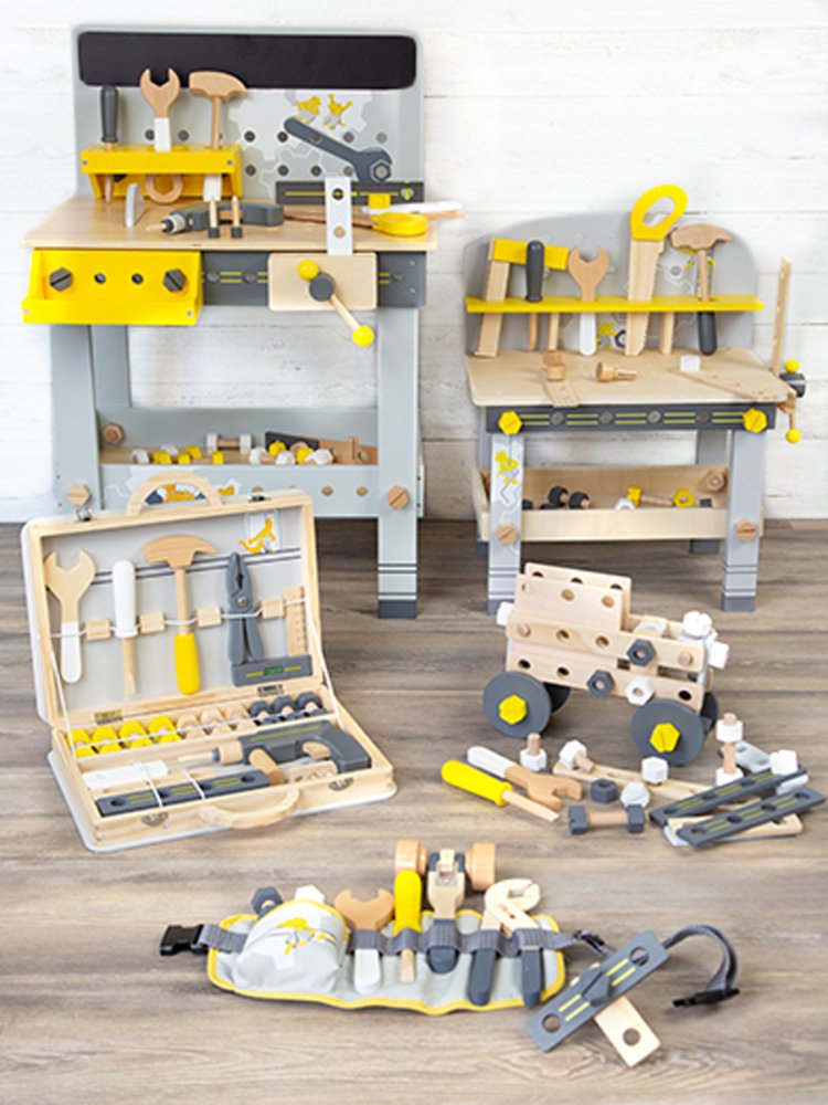 Set da costruzione che aiuta a esercitare la costruzione tridimensionale e non pone limiti alla creatività. Il set include 2 attrezzi in legno (chiave inglese, cacciavite), un'ampia gamma di accessori da listelli di costruzione, pannelli di costruzione, viti, dadi, cubi, ruote, adattatori per ruote e distanziali, nonché una scatola per riporre l'intero set. Principali caratteristiche: Promuove la creatività e l'immaginazione può essere idealmente integrato con altri prodotti della serie di strumenti Miniwob MiniwobIncontra i piccoli woby, gli entusiasti tuttofare coccodrillo! Con il loro aiuto, tutto il lavoro fila liscio e nessun edificio è abbastanza grande ed elaborato. La vasta gamma di strumenti offre un divertimento perfetto per tutti i piccoli artigiani, attraverso i quali possono essere creativi e realizzare tutte le loro fantastiche idee. I singoli set possono essere combinati ed espansi con le crescenti capacità dei bambini. Grazie al tema cromatico unificante e alle raffigurazioni di simpatici Wob, è possibile creare un angolo officina unico e coerente, che sarà allo stesso tempo un prezioso set di costruzioni che sviluppa abilità e immaginazione.