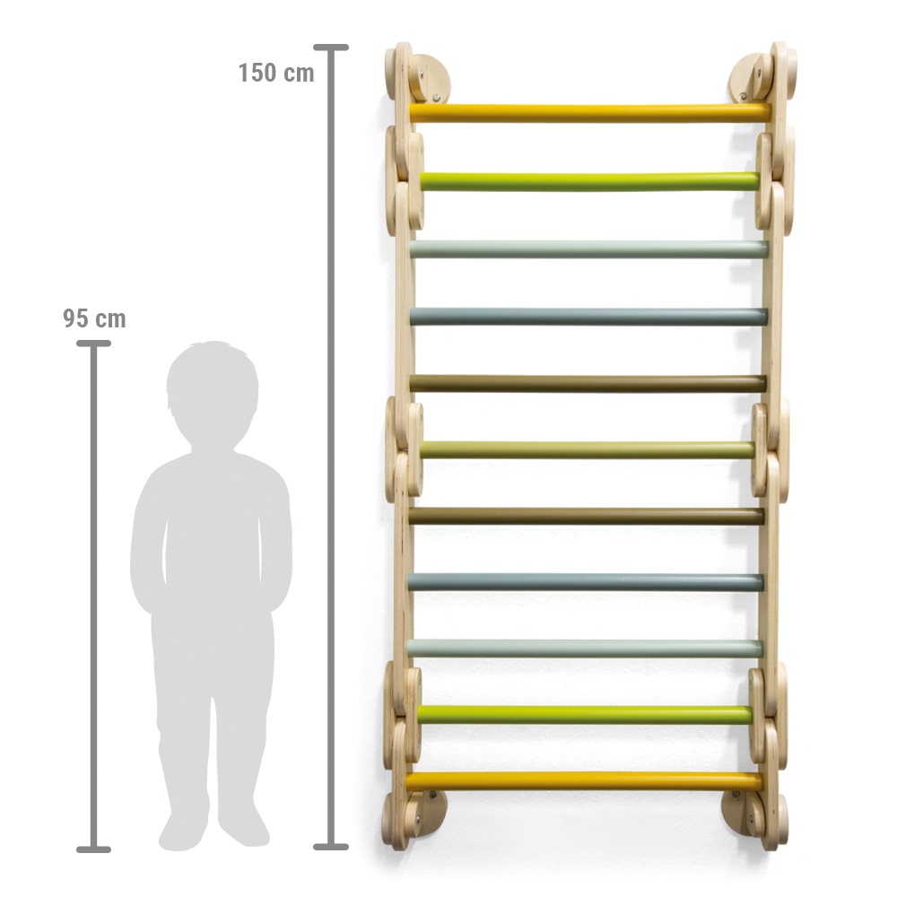 Il triangolo da arrampicata e la scala svedese 2 in 1 si distinguono per la loro struttura flessibile. Il triangolo da arrampicata autoportante a terra può essere utilizzato come un divertente telaio da gioco, coperto con una coperta come un nascondiglio o una casetta. Se non hai abbastanza spazio, puoi smontarlo e fissarlo al muro con 4 supporti (inclusi nella confezione) per creare una scala svedese con 11 barre adatta anche ai bambini più grandi. I bambini possono sviluppare le loro capacità motorie, l'equilibrio e la coordinazione dei movimenti. La scala svedese può essere utilizzata anche per la terapia motoria. Si adatta perfettamente a qualsiasi stanza o angolo giochi e può essere combinata con altri prodotti della linea Adventure. Il prodotto richiede l'assemblaggio, fornito con istruzioni dettagliate per l'assemblaggio. Principali caratteristiche: utilizzo multifunzionaleper bambini piccoli e grandiStruttura in legno resistenteportata 50 kg