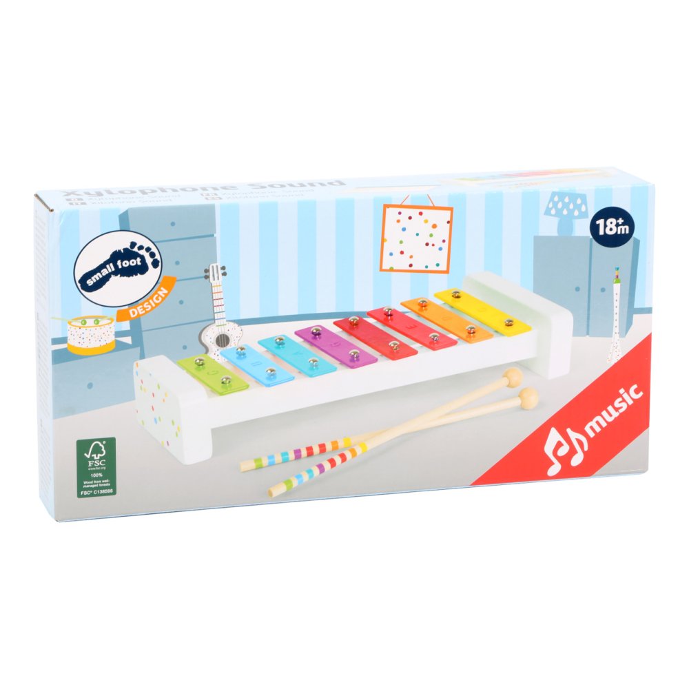 Con questo xilofono multicolore realizzato in legno certificato FSC® al 100%, i bambini faranno le loro prime esperienze nel mondo della musica. I tasti sono in metallo. Nel momento in cui i giovani musicisti colpiscono le singole bacchette, alleneranno la loro percezione uditiva e saranno entusiasti di suonare nuove melodie. Sviluppa non solo la creatività, ma anche la destrezza, grazie alle bacchette. La confezione include anche diversi fogli di musica che aiuteranno i bambini a suonare la musica. Le note e le linee sono contrassegnate con gli stessi colori. Strumento musicale colorato per bambini. Principali caratteristiche: Legno FSCtasti in metallosviluppa creatività e manualità Il marchio e il certificato FSC® (Forest Stewardship Council) garantiscono che il legno con cui è stato realizzato il prodotto non è stato abbattuto illegalmente e proviene da foreste gestite in modo sostenibile o vicino alla natura, in cui vengono rispettati severi requisiti ambientali e sociali. Il marchio FSC® sul prodotto significa che, con il tuo acquisto, contribuisci a proteggere le foreste e a sostenere una gestione forestale rispettosa, responsabile e vicina alla natura, grazie alla quale le nostre foreste sono più stabili, sane, hanno una composizione di specie naturale e resistono meglio alle conseguenze negative dei cambiamenti climatici.