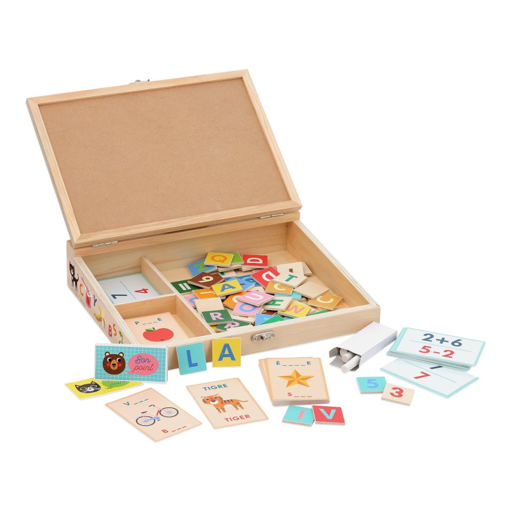 Tornate ai tempi in cui le vostre nonne frequentavano la scuola! E questo grazie a una lavagna a mobile riccamente decorata con illustrazioni multicolori di Ingela P. Arrhenius. Con il suo aiuto, naturalmente, si può imparare a scrivere e a contare, ma anche ampliare il vocabolario con parole inglesi e francesi. All'interno del mobile troverete un ampio set di vari pezzi e carte di legno, sia con lettere, numeri o interi esempi e parole. Potete premiare le risposte corrette e le soluzioni di successo con carte di punteggio. La lavagna include anche un paio di ali, quindi potete iniziare a usarla immediatamente. Il mobile è robusto e resistente, realizzato in legno piacevole al tatto. Con una semplice serratura può essere chiuso in modo sicuro, in modo da potervi accompagnare nei vostri viaggi senza il rischio di rovesciare il suo contenuto. Principali caratteristiche: lavagna con 2 ali; 70 pezzi con lettere, numeri e simboli; 80 carte di parole, 30 carte di esempi numerici, 12 carte di punteggioper l'apprendimento dell'inglese e del francesedesign Ingela P. Arrheniusdesign robusto e resistenteconfezione pratica L'artista svedese Ingela Peterson Arrhenius è nata nel 1967. L'arte e il design hanno sempre avuto un posto nella sua vita e, prima di iniziare la sua carriera come illustratrice, Ingela ha lavorato come direttrice artistica a Stoccolma. Successivamente ha studiato pubblicità e graphic design presso una scuola d'arte, sempre a Stoccolma. Nel 1992 ha iniziato a lavorare come illustratrice freelance e ha lavorato a livello internazionale in pubblicità, design, editoria… In passato ha creato modelli di stampa per tessuti, carta da parati, articoli di cancelleria, e ha anche lavorato su imballaggi, design di prodotti, accessori per la casa e giocattoli. I suoi poster e i suoi giocattoli di design si trovano in tutto il mondo. Ha una passione per lo stile retrò, che è chiaramente visibile nelle sue opere e anche nel suo entusiasmo per la tipografia e i colori. Ora vive a Stoccolma con suo marito e i suoi 2 figli.