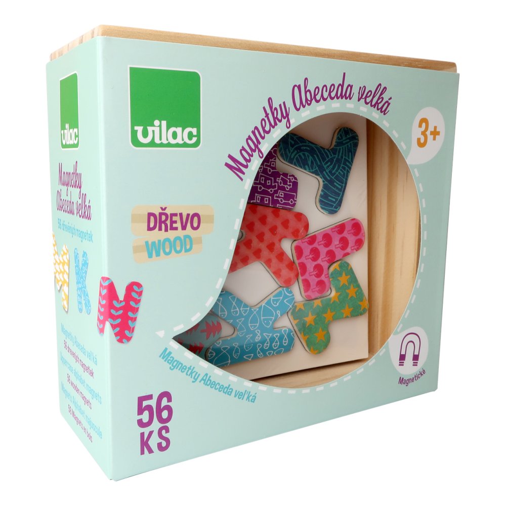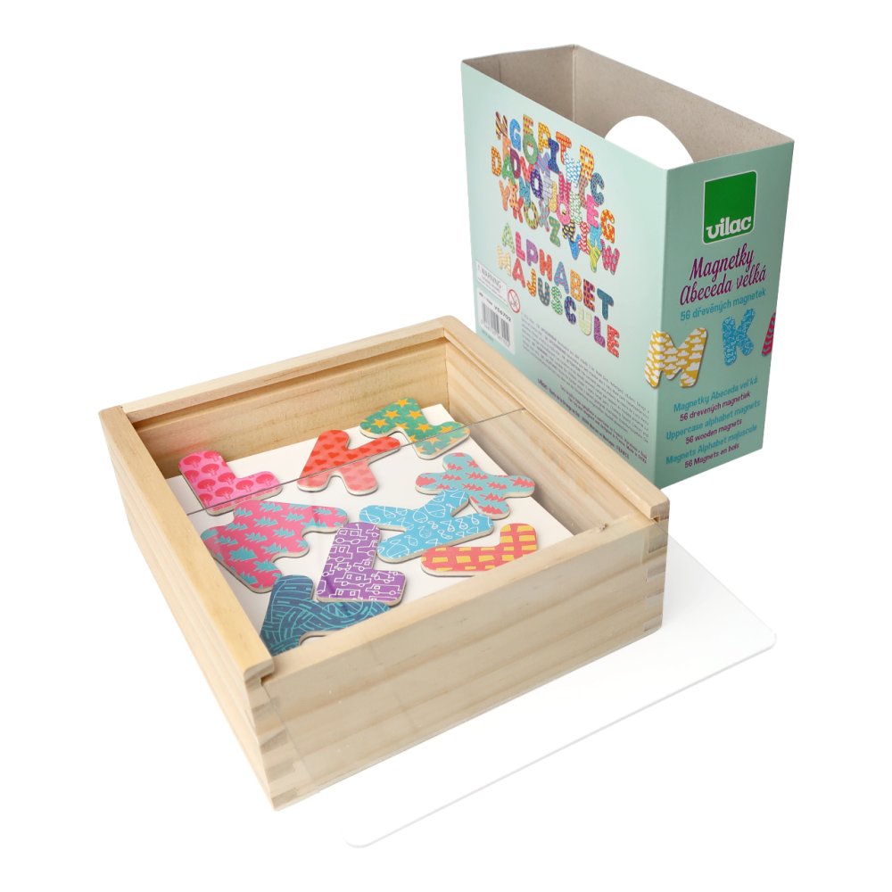 Le lettere magnetiche in legno dell'alfabeto possono insegnare ai bambini le loro prime parole. È possibile giocarci sul frigorifero o su una lavagna magnetica. Sono decorate con una vivace gamma di colori accattivanti e motivi unici. Ogni lettera è quindi ancora più facilmente riconoscibile e motiva a creare nuove connessioni. Principali caratteristiche: 56 magneticolori chiari e vivaci e motivi originaliAdatto come elemento decorativo e ausilio didattico