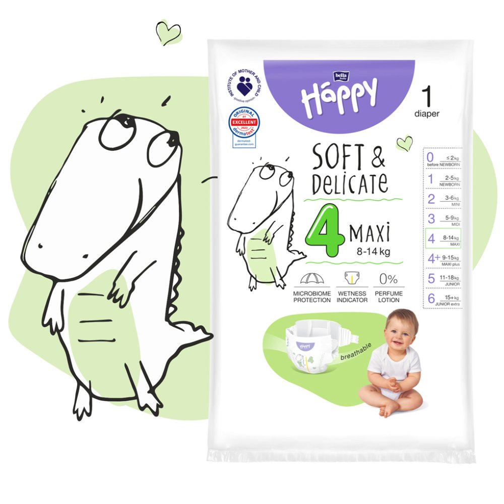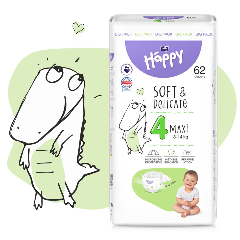 I pannolini Happy Soft & Delicate Maxi (4) sono consigliati per i neonati di 8-14 kg di peso. Sono realizzati con materiali di altissima qualità, si adattano perfettamente al corpo del bambino e offrono una piacevole sensazione di asciutto. Sono progettati per soddisfare le esigenze delle pelli più sensibili: non contengono allergeni e riducono al minimo il rischio di eritema da pannolino.Composizione:Fibra di cellulosa, nontessuti superassorbenti, idrofobici e idrofili, film traspiranti, adesivi, carta velina, nastro elastico, fibre elastomeriche, indicatore di umiditàAVVERTENZA: Tenere tutti i materiali di imballaggio fuori dalla portata dei bambini. Potrebbe verificarsi un'asfissia.Indirizzo del fornitore: Toruńskie Zakłady Materiałów Opatrunkowych SA, ul. Żółkiewskiego 20/26, Toruń 87-100, Polonia, http://tzmo-global.com, tzmo@tzmo-global.com
