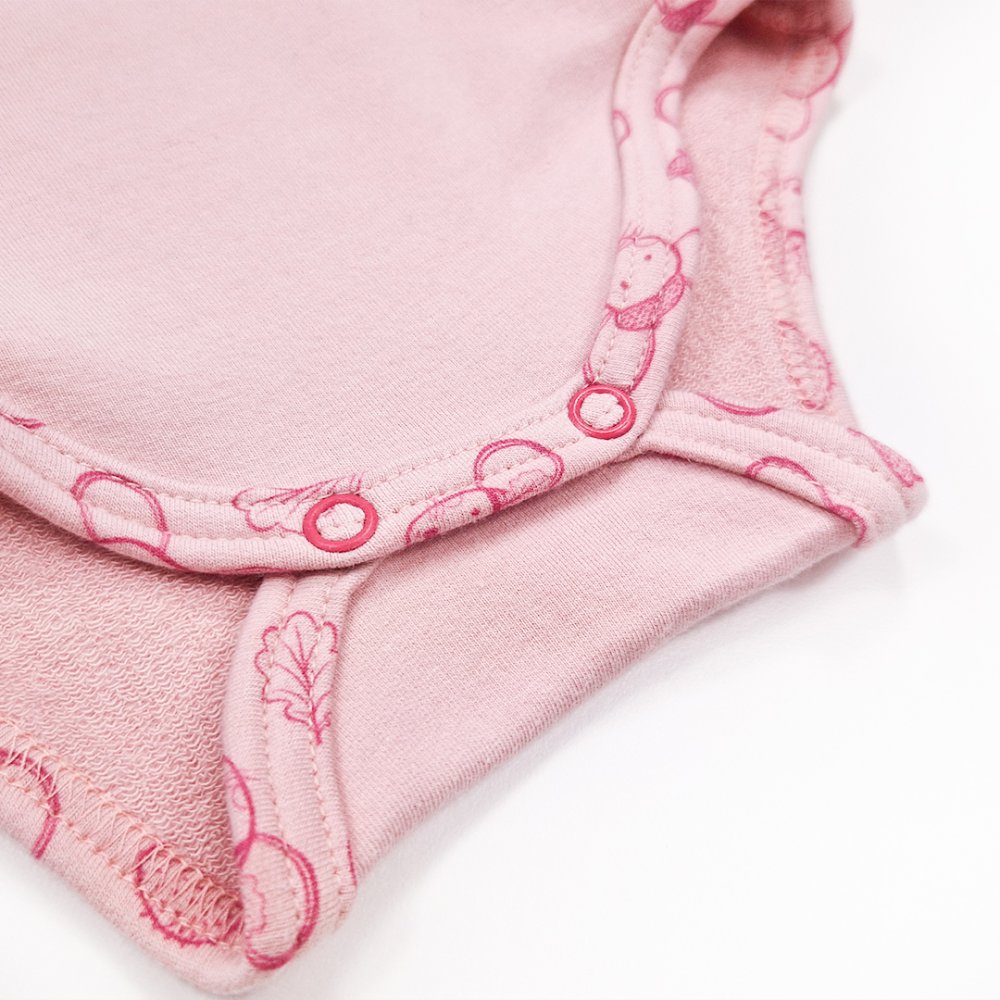 Il corpo a maniche lunghe in tessuto a maglia spessa è perfetto per i mesi freddi. È adatto come strato di base quando ci si veste fuori, ma in combinazione con pantaloni della tuta o tutine può essere indossato anche a casa. Il body è realizzato in un materiale elastico e confortevole che si adatta a diverse taglie. Le mamme apprezzeranno sicuramente la chiusura con bottoni automatici sul collo e sul cavallo, che rende il body molto facile e veloce da indossare. Per la produzione di questo body è stato utilizzato il materiale Outlast® in una variante ad anello, che è liscia sul davanti e ha anelli sul rovescio. Il materiale Outlast® è in grado di regolare la temperatura corporea, di allontanare il calore in eccesso e di prevenire la sudorazione durante l'uso. Nel momento in cui la temperatura corporea scende, il materiale Outlast® rilascia il calore accumulato e inizia a riscaldare il corpo. L'abbigliamento in materiale Outlast® è molto apprezzato per le sue proprietà termoregolatrici, in quanto garantisce il comfort termico per tutto il tempo in cui viene indossato. Il body a maniche lunghe è adatto per i mesi autunnali, invernali e primaverili.