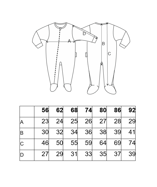 La tutina è realizzata in morbido cotone con l'aggiunta di materiale termoregolante Outlast® in una versione sottile. Questo tipo di materiale Outlast® è liscio sia sul dritto che sul rovescio. Il materiale Outlast® monitora la temperatura corporea del bambino e, quando il bambino diventa troppo caldo, può trasferire il calore in eccesso dal corpo per evitare la sudorazione. Al contrario, quando la temperatura corporea si abbassa, Outlast® può rilasciare il calore immagazzinato e riscaldare il corpo.