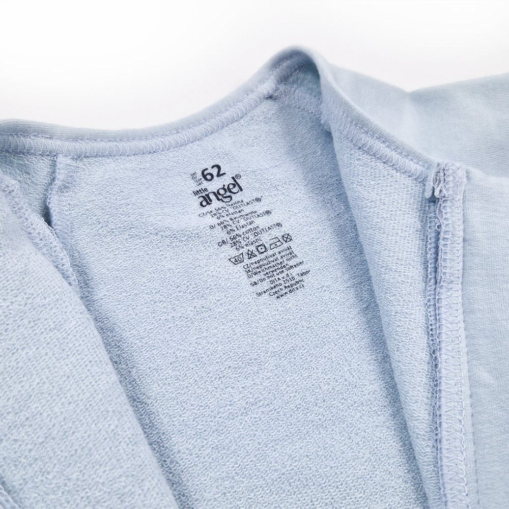 La tuta è realizzata in morbido cotone con l'aggiunta del materiale termoregolatore Outlast® in versione velata. Questo tipo di materiale Outlast® è liscio sulla faccia e presenta delle asole sul retro. Il suo calore lo rende adatto alle stagioni più fredde. Il materiale Outlast® monitora la temperatura corporea del bambino e, quando il bambino diventa troppo caldo, può trasferire il calore in eccesso dal corpo per evitare la sudorazione. Al contrario, quando la temperatura corporea si abbassa, Outlast® può rilasciare il calore immagazzinato e riscaldare il corpo. Il materiale Outlast® garantisce il massimo comfort termico per tutto il periodo di utilizzo e non dovrete preoccuparvi che il bambino sudi o si raffreddi. La tuta è ideale come strato di base per i mesi invernali, ma può essere utilizzata anche in autunno o in primavera.