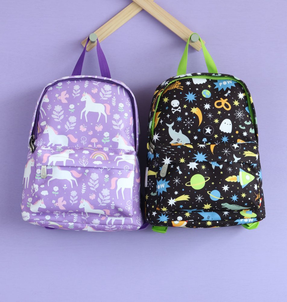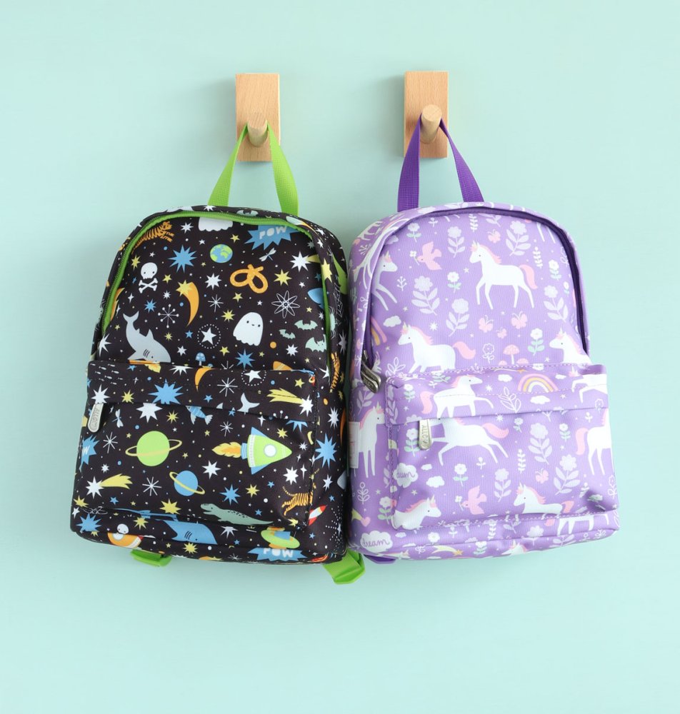 Piccolo zainetto per bambini a partire dai 2 anni. L'ampio scomparto principale con un'ulteriore tasca frontale con zip offre spazio sufficiente per una merenda e il giocattolo preferito. Lo zaino è dotato di spallacci imbottiti e di un comodo pannello posteriore. Il materiale in poliestere è resistente, leggero e decorato con una stampa colorata. La cinghia pettorale assicura che lo zaino rimanga saldamente sulle spalle. Le dimensioni dello zainetto sono 23,5 x 30 x 10 cm e la capacità è di 7 litri. Non mettere lo zainetto in lavatrice, lavare solo a mano.