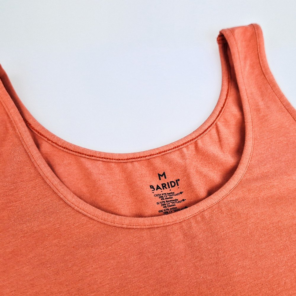 La canotta ha un taglio semplice e ha etichette stirate che non sfregano né graffiano. Sul davanti, nella parte inferiore, è presente un piccolo logo Baridi wear®.