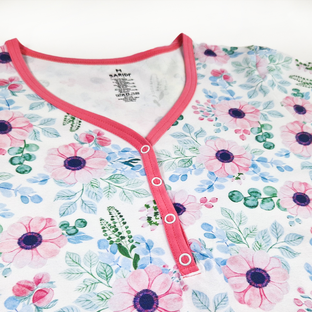La morbida maglia di cotone con Outlast® è molto piacevole da indossare e apprezzerai sicuramente le etichette stirate che non premono e non graffiano. I pantaloncini sono realizzati in modo da offrire il massimo comfort. La maglietta ha una chiusura con bottoni automatici nella zona del décolleté. Può essere utilizzato anche durante l'allattamento, in quanto offre una facile apertura.