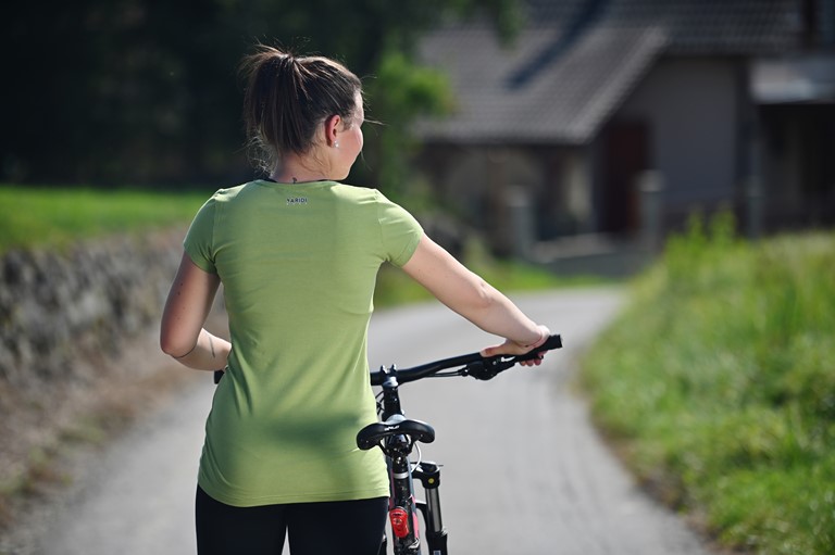 La T-shirt da donna in maglia di cotone leggero ha maniche corte e una scollatura a U molto lusinghiera. Durante la produzione della T-shirt è stato utilizzato il materiale termoregolatore Outlast® che controlla la temperatura corporea e previene l'eccessiva sudorazione. Quando il corpo si surriscalda troppo, il materiale Outlast® allontana il calore in eccesso dal corpo. Quando la temperatura corporea diminuisce, rilascia il calore accumulato e ti riscalda. Grazie a queste caratteristiche, amerai questa maglietta soprattutto nei mesi estivi, ma puoi usarla anche in inverno, ad esempio come strato base sotto la tua blusa preferita. Il materiale Outlast® si prenderà cura del comfort termico per tutto il tempo in cui lo indossi.