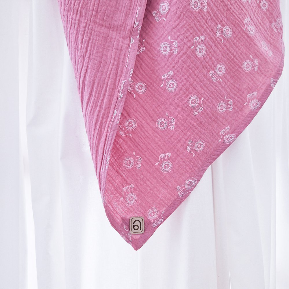 Coperta in mussola di cotone, sottile, traspirante e leggera, ovvero mussolina, con un motivo di design. È adatta per le giornate più calde, quando è necessario coprire il bambino nella carrozzina o nel seggiolino auto. Questo è semplicemente un oggetto che non lascerete andare per tutta l'estate. Potete usarlo come coperta estiva per la carrozzina, come asciugamano dopo il bagno, come tappetino dal medico, al parco, in visita, al ristorante. Coperta, asciugamano o semplicemente come copriletto. Le possibilità di utilizzo sono illimitate. Utilizzate la coperta in mussola anche come copertura per l'allattamento, come aiuto per l'arrotolamento o come panno di garza per l'uso quotidiano. Ideale anche per la tecnica dello swaddling, in cui il bambino viene semplicemente avvolto per dargli un abbraccio, un senso di sicurezza, calore e comfort.