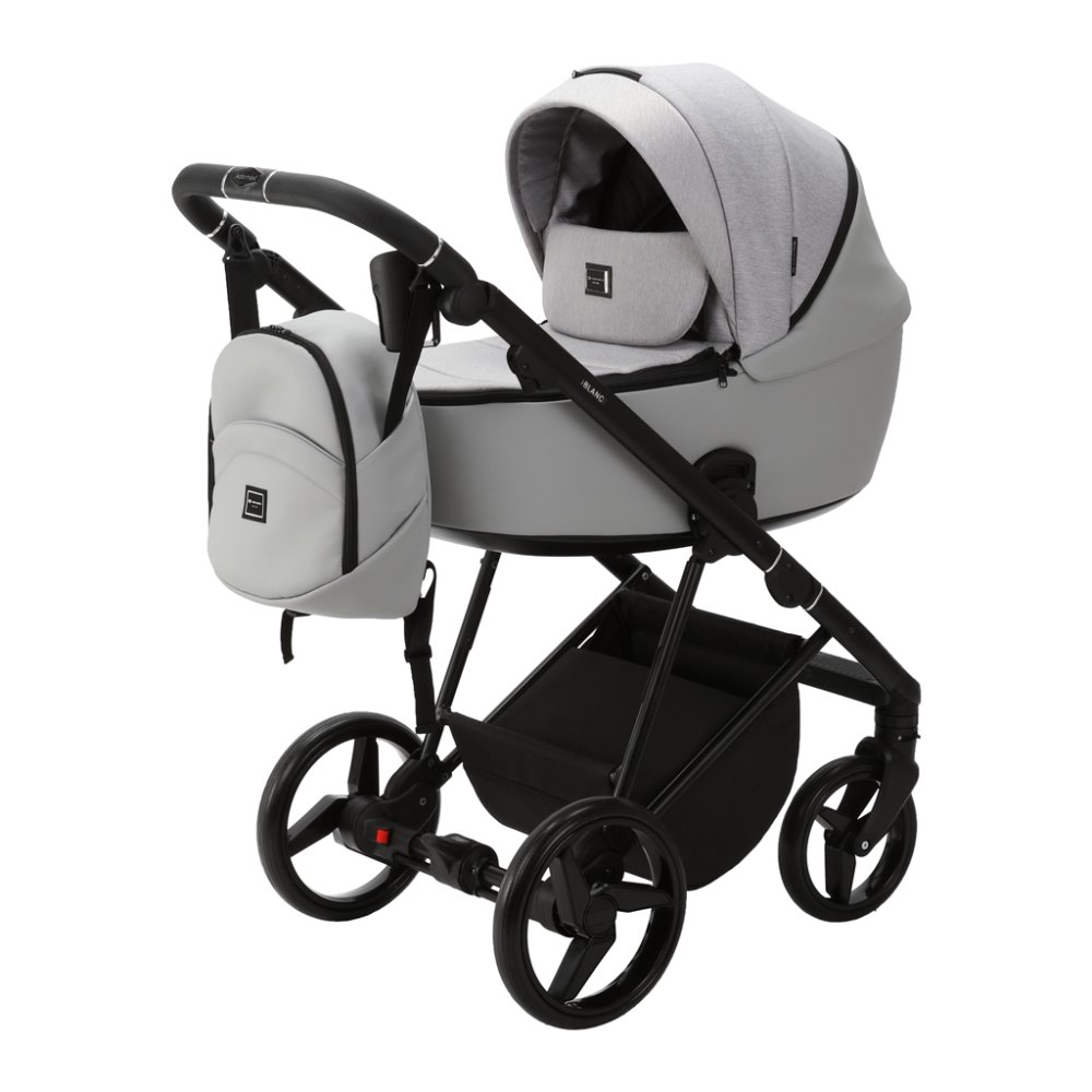Un classico per i più esigenti che apprezzano l'eleganza sportiva. Il rivestimento della carrozzina è realizzato in ecopelle e tessuto pratici e perfettamente abbinati nei colori. Tutto questo, in combinazione con il telaio nero facile da manovrare, crea un design e una funzionalità senza tempo che durano negli anni.Inoltre… Sapevi che il passeggino Blanc ha adattatori con il cosiddetto sistema di memoria? Pulsante di memoria che consente di estrarre la navicella dal telaio in modo estremamente semplice? Basta premerli e il sistema di memoria manterrà i pulsanti premuti finché non si rimuove la navicella. Super semplice e super funzionale, e questa è solo una delle sue funzioni.Il set include anche una seduta sportiva estremamente funzionale, che può essere montata sul telaio in entrambe le direzioni e, soprattutto, può essere piegata insieme al telaio indipendentemente dalla direzione di marcia.Caratteristiche:Navicella- Tessuto esterno idrorepellente- Materasso in fibra di cocco- Fodera del materasso rimovibile con chiusura a zip – lavare a mano a 30 gradi- Materasso regolabile per un maggiore comfort dei bambini- Cappottina estensibile con finestra per consentire il contatto con il bambino- Parasole estraibile- Ventilazione regolabile nella parte inferiore della navicella per una migliore circolazione dell'aria nella stagione caldaSedile sportivo- Maniglione in ecopelle rimovibile e ribaltabile- Tessuto esterno idrorepellente- Tasca sul retro dello schienale del passeggino- Regolazione dello schienale a più livelli- Possibilità di montare il sedile sia in senso di marcia che in senso contrario- Finestra di ventilazione nel tettuccio- Tettuccio pieghevole con estensione- Cinture di sicurezza a cinque punti con imbottitura- Coprigambe che protegge il bambino nella stagione fredda- Poggiagambe regolabileTelaio- Possibilità di piegare il passeggino insieme al sedile sportivo- Cestino spazioso- Struttura in alluminio- Ruote in schiuma PU senza camera d'aria, che non richiedono manutenzione- Blocco delle ruote anteriori piroettanti- Freno di stazionamento con funzione di segnalazione della posizione- Regolazione della durezza delle sospensioni posteriori- Altezza del manico regolabile- Ammortizzatore centrale regolabileAccessori- parapioggia per navicella e sedile sportivo- zanzariera per navicella e sedile sportivo- Borsa fasciatoio – zaino- portabottiglie- poggiapiediParametri tecnici:- Dimensioni del passeggino aperto: 116 x 57,5 x 110-119 cm (L x P x A)- Dimensioni del passeggino chiuso: 81 x 57,5 x 39 cm (P x L x A)- Peso con navicella: 13,9 kg- Peso con seduta sportiva: 12,7 kg- Portata del passeggino: 15 kgIMPORTANTE! Leggere attentamente le istruzioni e conservarle per un utilizzo futuroAvviso:- non lasciare mai il bambino incustodito- utilizzare l'imbracatura se il bambino è in grado di sedersi senza aiuto- prima dell'uso, verificare che tutti i dispositivi di bloccaggio siano inseriti- durante il montaggio e lo smontaggio di questo prodotto, assicurarsi che il bambino non si trovi all'interno del passeggino e nemmeno vicino ad esso, per evitare lesioni al bambino- questo prodotto non è un giocattolo, non permettere al bambino di giocare con questo prodotto- non utilizzare questo seggiolino per bambini di età inferiore ai 6 mesi- utilizzare sempre il sistema frenante- prima dell'uso, controllare che i dispositivi di bloccaggio della culla o del seggiolino o del seggiolino auto siano correttamente inseriti- questo prodotto non è adatto per correre o pattinareInformazioni importanti:Il passeggino universale è destinato a bambini di età compresa tra 0 e 36 mesi con un peso corporeo di 15 kg. La navicella è destinata a bambini con un peso massimo di 9 kg. Quando non si utilizza il passeggino, utilizzare sempre il freno di stazionamento. Non utilizzare un materasso diverso da quello fornito dal produttore. Quando si posiziona e si rimuove il bambino, assicurarsi che il freno di stazionamento sia inserito. Il carico massimo del cestino sotto il passeggino è di 2 kg.Appendere al manubrio del passeggino solo la borsa per accessori fornita con il passeggino. Il suo peso massimo è di 2 kg, qualsiasi carico appeso al manubrio influisce sulla sua stabilità. Il passeggino è progettato per trasportare un solo bambino. Questo telaio può essere utilizzato solo con la seduta, la navicella e il seggiolino auto forniti dal produttore in un unico set. Utilizzare esclusivamente pezzi di ricambio forniti o raccomandati dal produttore. Non è consentito l'uso di accessori non specificati dal produttore. Il passeggino non sostituisce una culla o un lettino. Quando il bambino ha bisogno di dormire, si consiglia di riporlo in una navicella, culla o lettino adeguati; questo vale anche per il seggiolino auto utilizzato con il telaio del passeggino.Utilizzare sempre la cintura inguinale insieme alle cinture addominali. Non lasciare mai il passeggino con il bambino su una pendenza, anche se il freno è inserito. Durante il mo